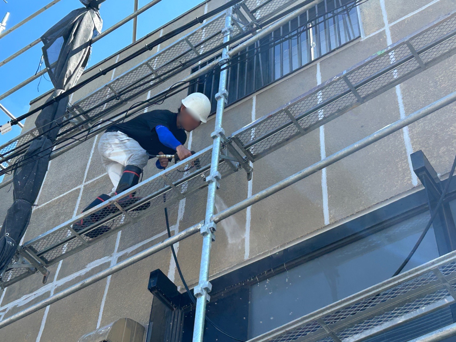 足場は単に足を乗せるためだけでなく、塗料の飛散防止・移動時の安全確保・作業効率向上のために不可欠な設備です。
